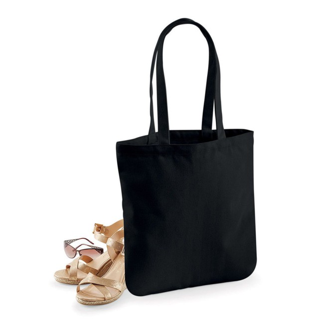 100% Cotone Canvas organico pettinato. 407 g/m² Tessuto certificato Control Union Tessuto di ottima qualità, resistentissimo Può essere portata a mano o in spalla. Etichetta removibile. Dimensioni: 38 x 41 cm Capacità: 10 litri Lunghezza del manico: 63 cm Pulire con una spugna