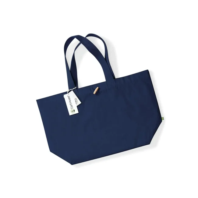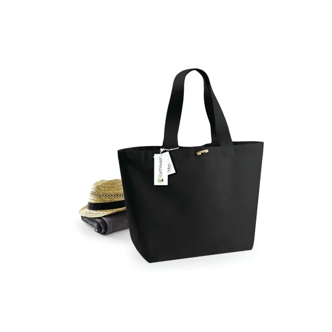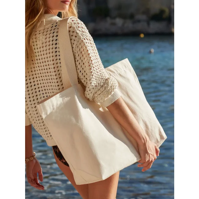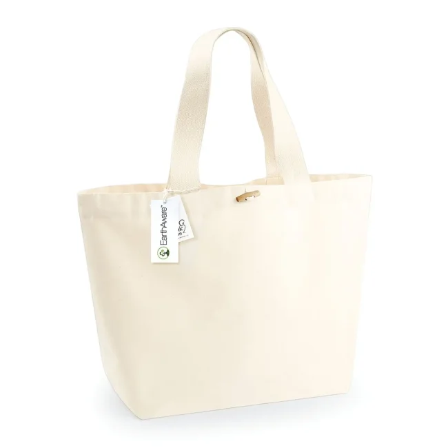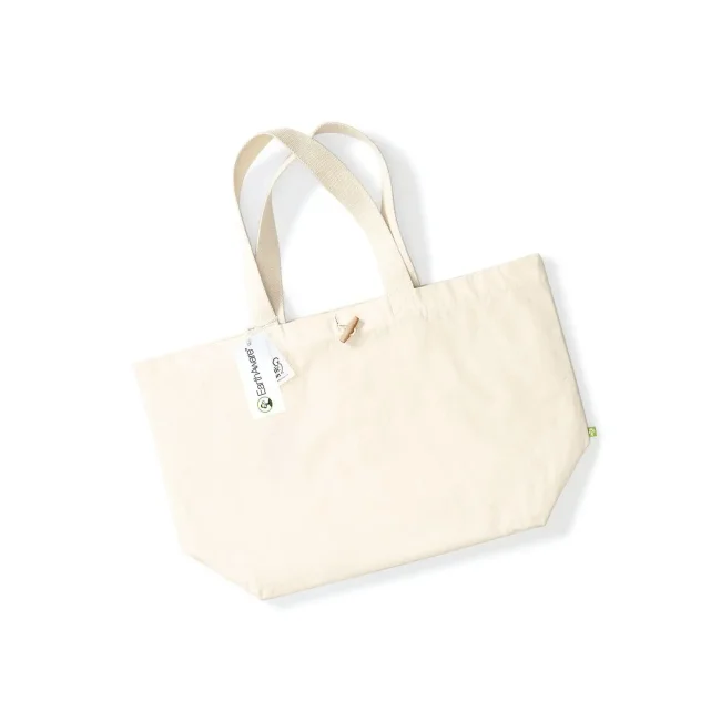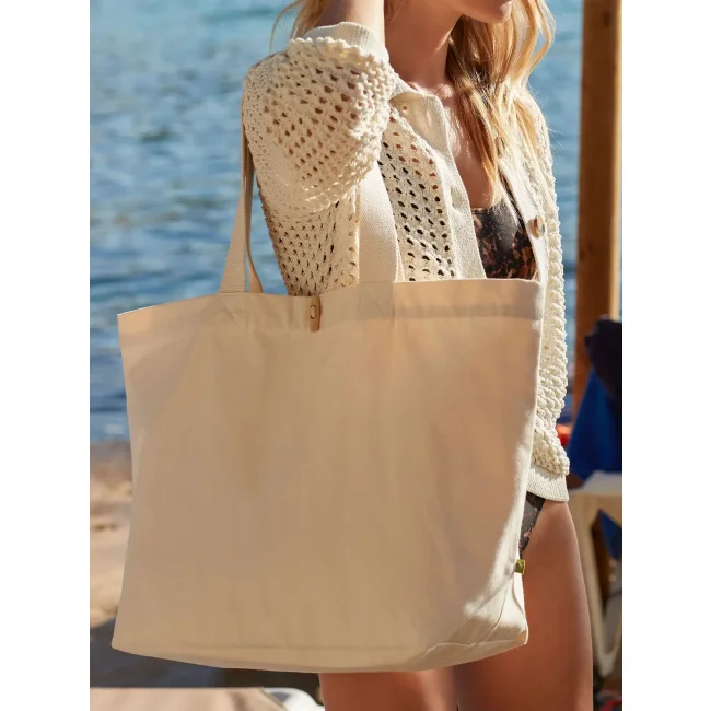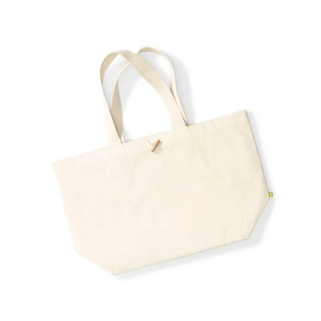 100% cotone organico canvas. Shopper in tessuto pesante premium, chiusura con alamaro, manici in cotone. Etichetta removibile. Lunghezza manico - 60 cm. Dimensioni: 40x39x19 cm, capacità: 30L, area di stampa: 52x30 cm. Prodotto certificato GOTS-CU811033