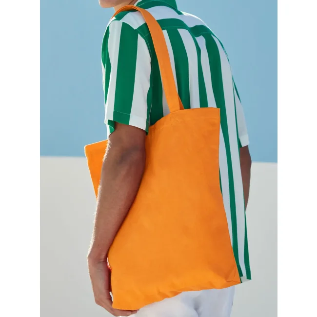 100% cotone organico. 100% Cotone Organico - Certificato GOTS- CU811033. Shopper in cotone Twill, può essere portata a mano o in spalla, lunghezza del manico - 67cm. Dimensioni 29x42x8cm. Capacità 10 litri. Area di stampa 27x36cm. Etichetta strappabile.