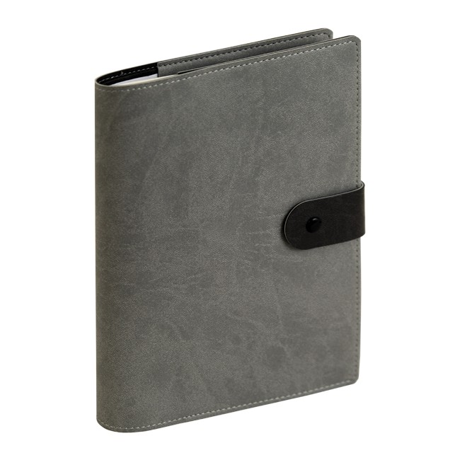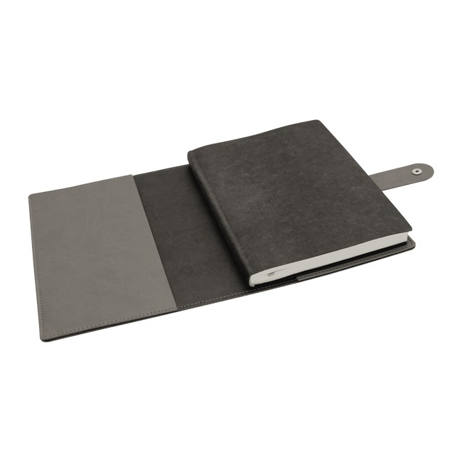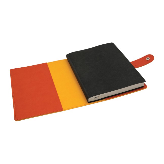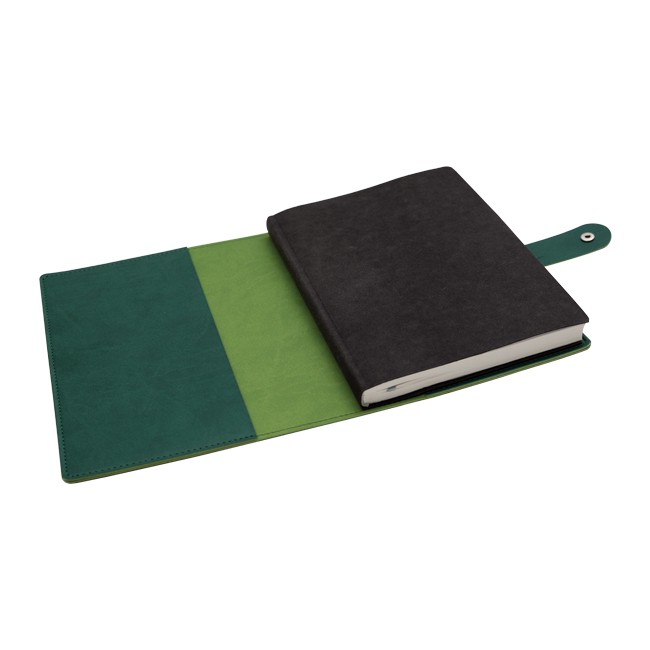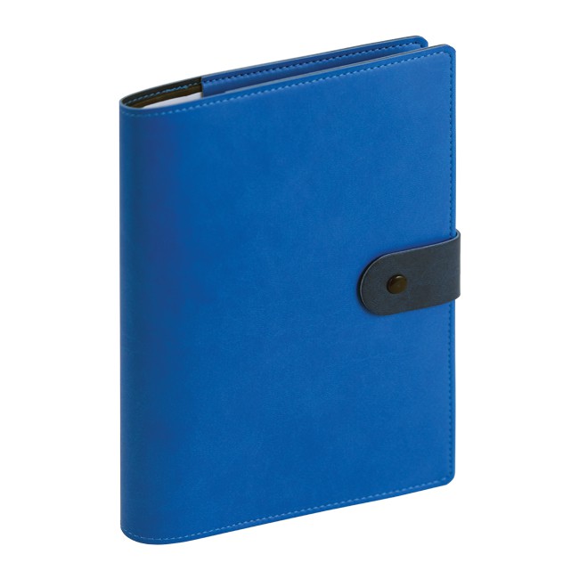 Grafica interna blu, grigio. Copertina a portafoglio con passante in vivella bicolore, finiture a contrasto colorate.