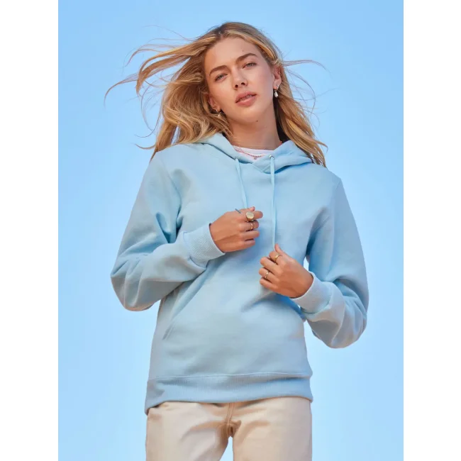 57% cotone 43% poliestere riciclato. Felpa con cappuccio caratterizzata da una morbidezza superiore, realizzata con poliestere riciclato al 100% e cotone coltivato da fonti sostenibili. Molto traspirante per un comfort che dura tutto il giorno. Alta densità di punti per una tela di stampa liscia, cappuccio foderato in jersey a 2 strati e tasca frontale a marsupio, cordino piatto in tinta, cuciture a due aghi su collo e giromanica, con polsini e fascia a costine. Etichetta removibile.