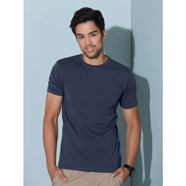 95% cotone, 5% elastane. T-shirt aderente con elastan, Single elastic di facile manutenzione, Cuciture laterali, Scollo rotondo con bordino stretto, Tessuto esterno (200 g/m²). Manica corta. Slimfit.
