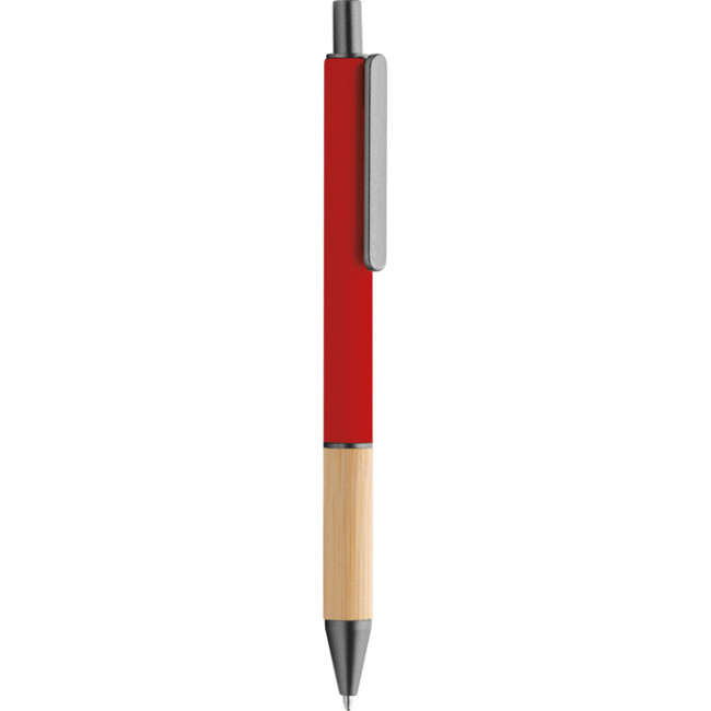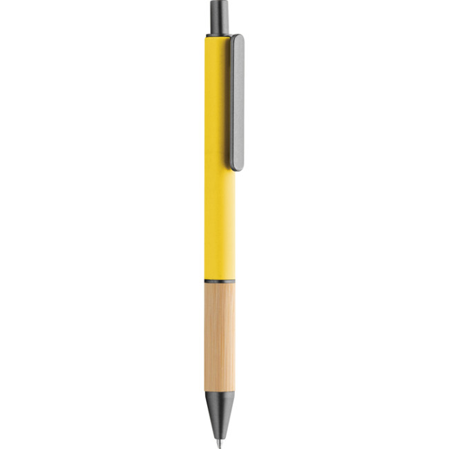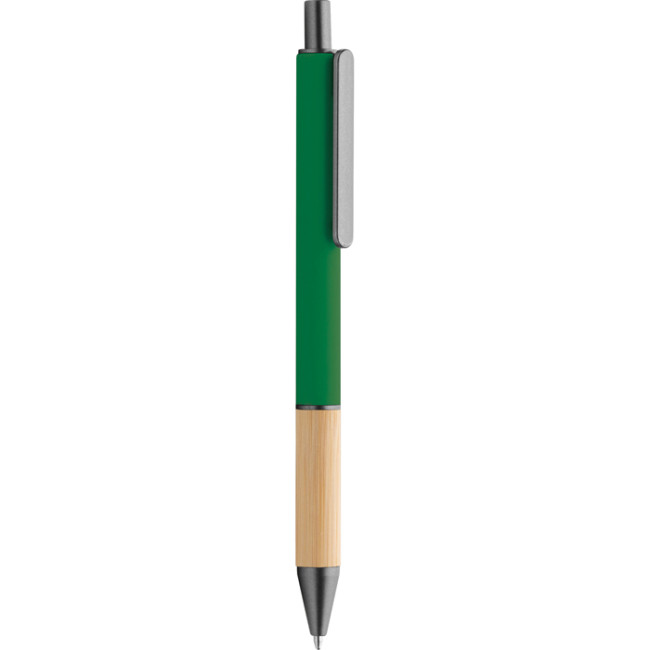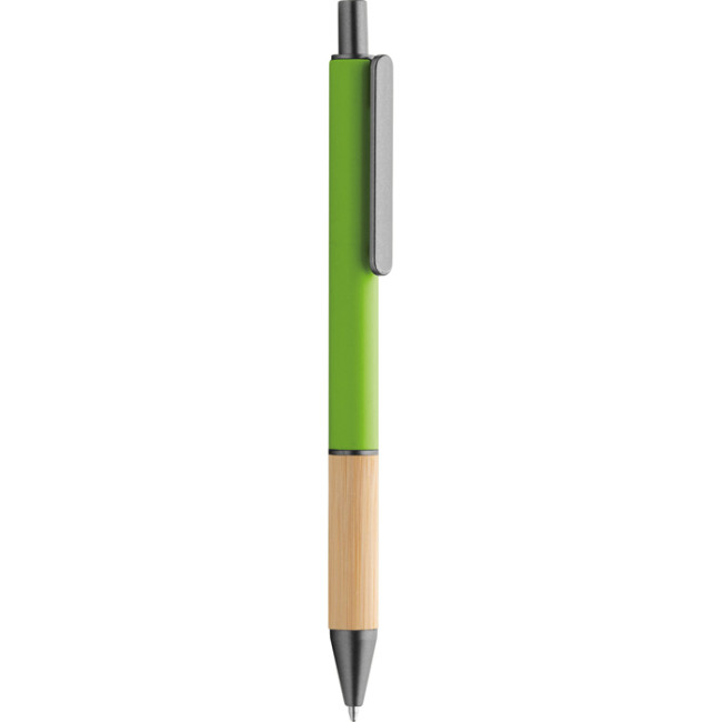 penna a sfera meccanismo a scatto fusto in plastica e bamboo minuterie in metallo grigio refill nero