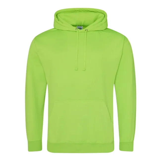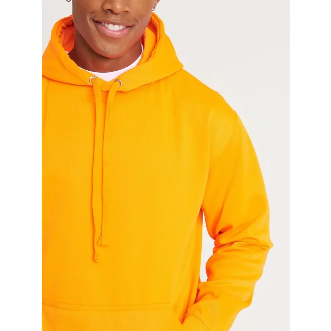 80% poliestere, 20% cotone ringspun. Felpa con maniche set-in, cappuccio con cordoncino piatto tono su tono, tasca a marsupio, polsini e orlo inferiore in costina, etichetta strappabile, felpata internamente, struttura con cuciture laterali.