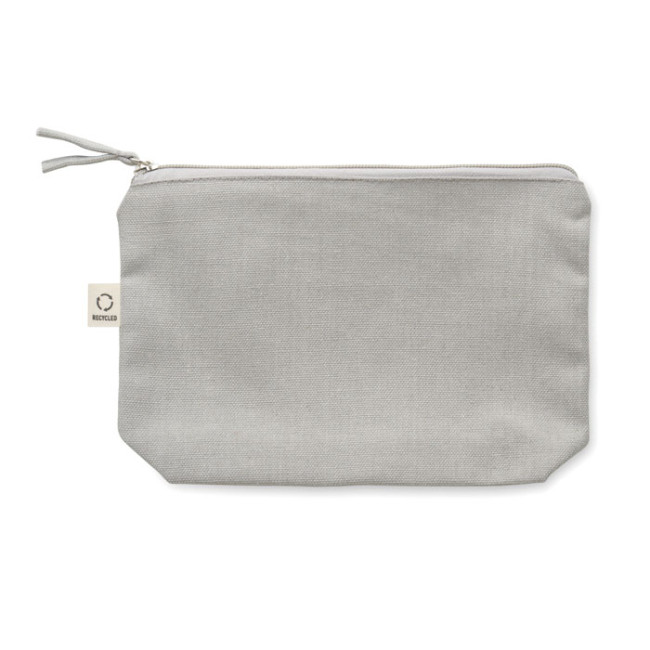 Borsa per cosmetici o accessori in tessuto riciclato (70% cotone riciclato e 30% poliestere RPET) con tiralampo coordinata. 320 gr/m².