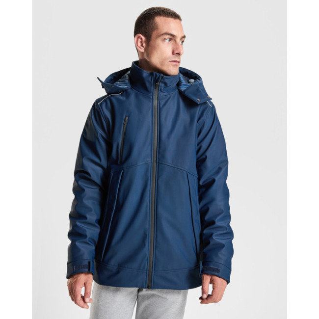 Parka sportivo termico imbottito, certificato per il calore. Dettagli riflettenti su spalle e schiena. Zip termosaldate a destra e sul davanti del petto. Due tasche laterali con zip coperte da una pattina in tessuto principale. Tasca interna sul lato sinistro. Maniche con chiusura velcro e polsino regolabile a coste 1x1. Punto di accesso sul retro per la rilavorazione. Cappuccio fisso con regolatori. (EN 14058:2017).