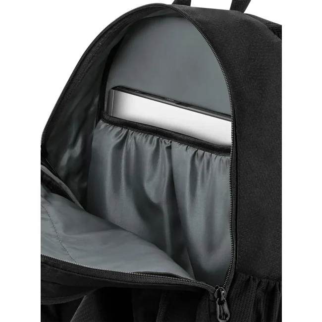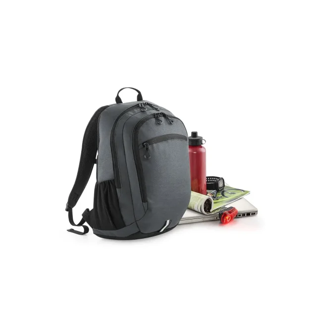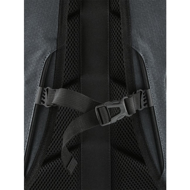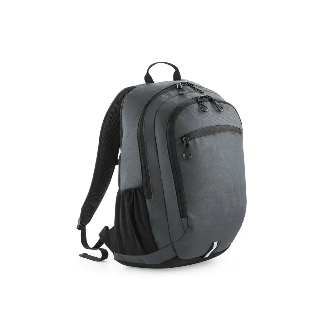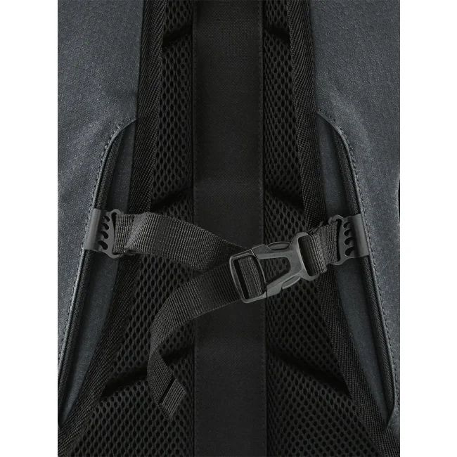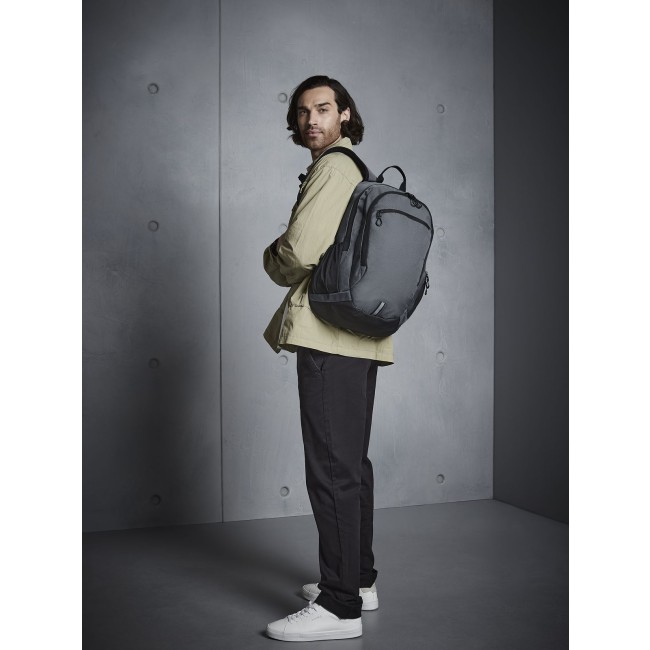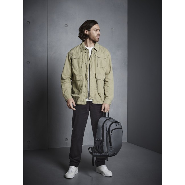 100% poliestere ripstop 600d. Zaino compatibile con laptop fino a 15,6", compartimento imbottito, tasca frontale con zip, tasca interna a rete, spalline imbottite e regolabili, cinturino pettorale regolabile. Dimensioni: 33 x 46 x 22 cm, capacita': 25 litri, area di stampa: 12 x 20 cm.