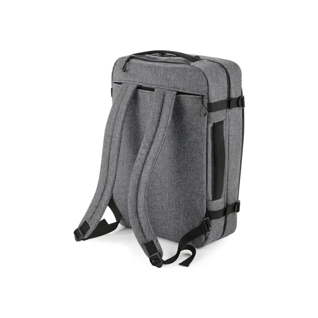 100% Pol. 600D. Zaino con scomparto imbottito per laptop (15,6"), cerniera dello scomparto principale con chiusura con blocco. Tasca superiore con cerniera, scomparto frontale con cerniera e divider interno in rete, tasca interna con zip, cinghie a doppia compressione, borsa con tracolla a scomparsa. Idoneo per la maggior parte delle compagnie aeree. Etichetta TearAway. Dimensioni: 35 x 51 x 28 cm. Chiuso: 35x51x20 cm. Capacità: 40 litri. Area di stampa: 22x36 cm.