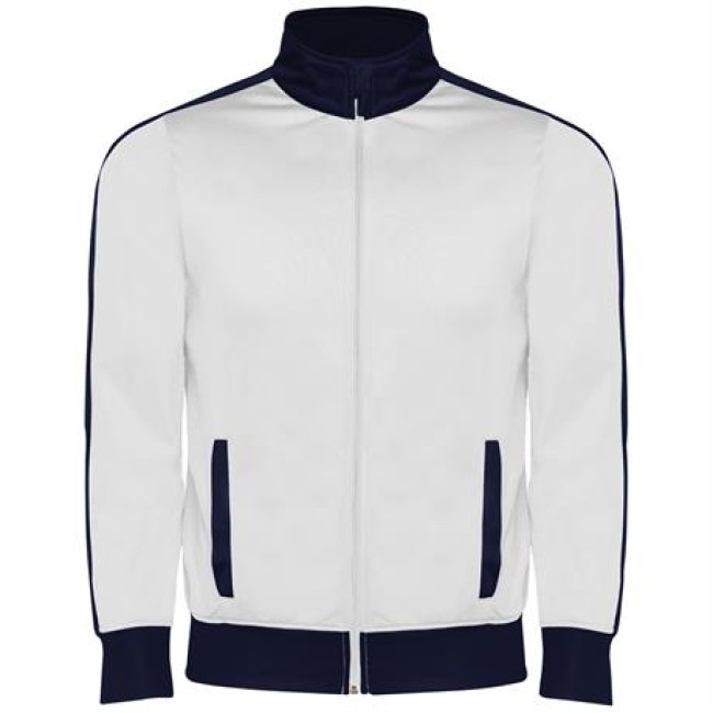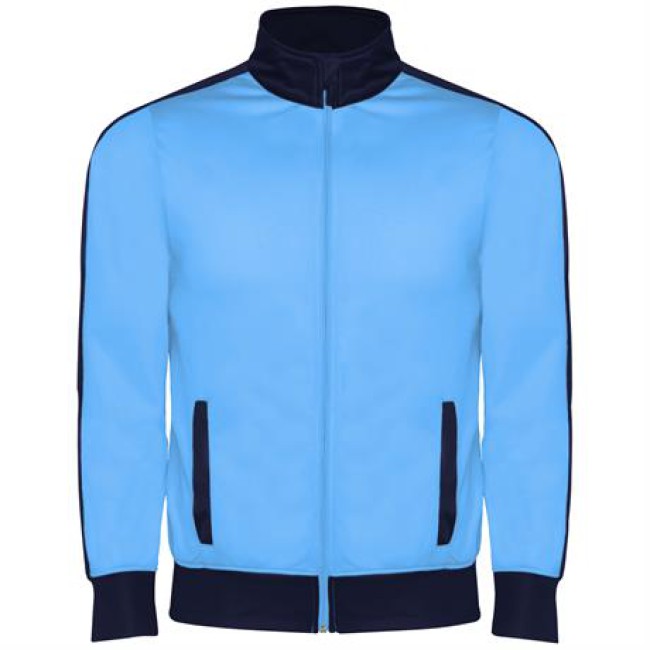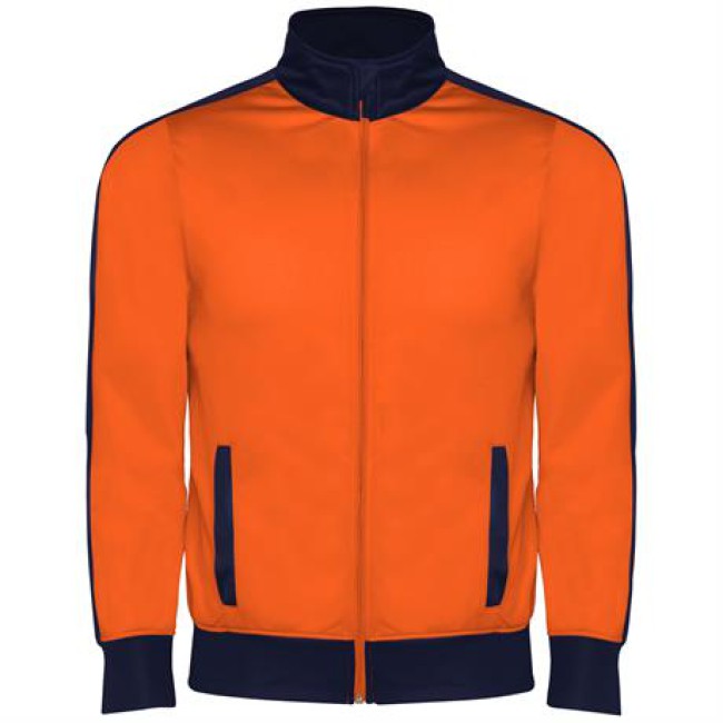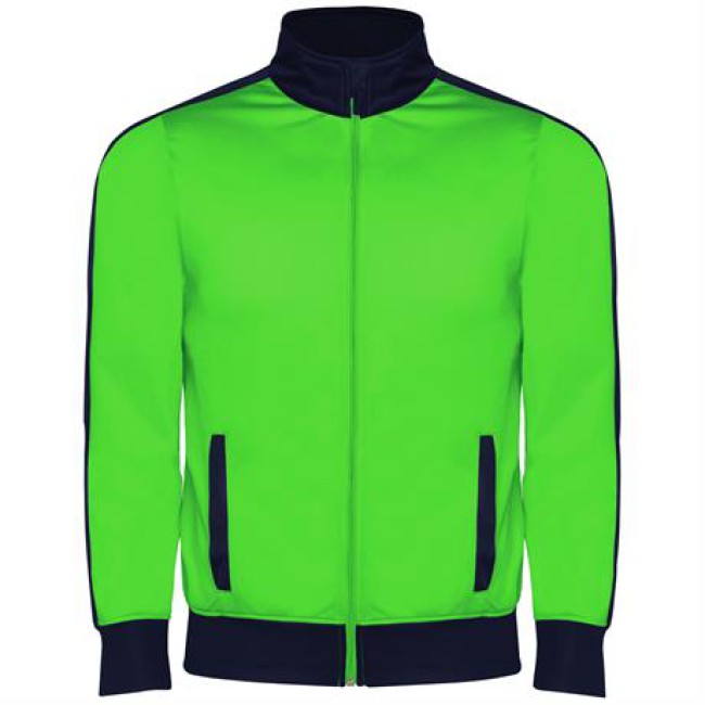 Tuta composta da giacca e pantaloni.1.- Collo alto con protezione zip.2.- Tasche frontali in colore a contrasto.3.- Polsini e vita in costina 1x1 in colore a contrasto.4.- Zip centrale con copri cuciture interne.5.- Pantaloni con girovita elastico e cordoncino regolabile con impuntura di sicurezza e due ampie tasche laterali .6.- Interni in velluto molto confortevoli.7.- Cerniere sulle caviglie dei pantaloni.