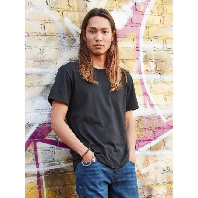 100% cotone pettinato. T-shirt maniche corte girocollo con costina elastica. Nastro di rinforzo da spalla a spalla. Tessuto liscio per un'eccezionale stimabilità. Classic fit. Tubolare. Etichetta strappabile.