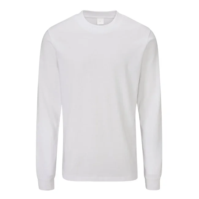 100% cotone organico. T-shirt a manica lunga, unisex, vestibilità morbida, polsini e girocollo a costine, orli ad ago singolo, etichetta posteriore strappabile, etichetta con QR code, lavabile a 40° C