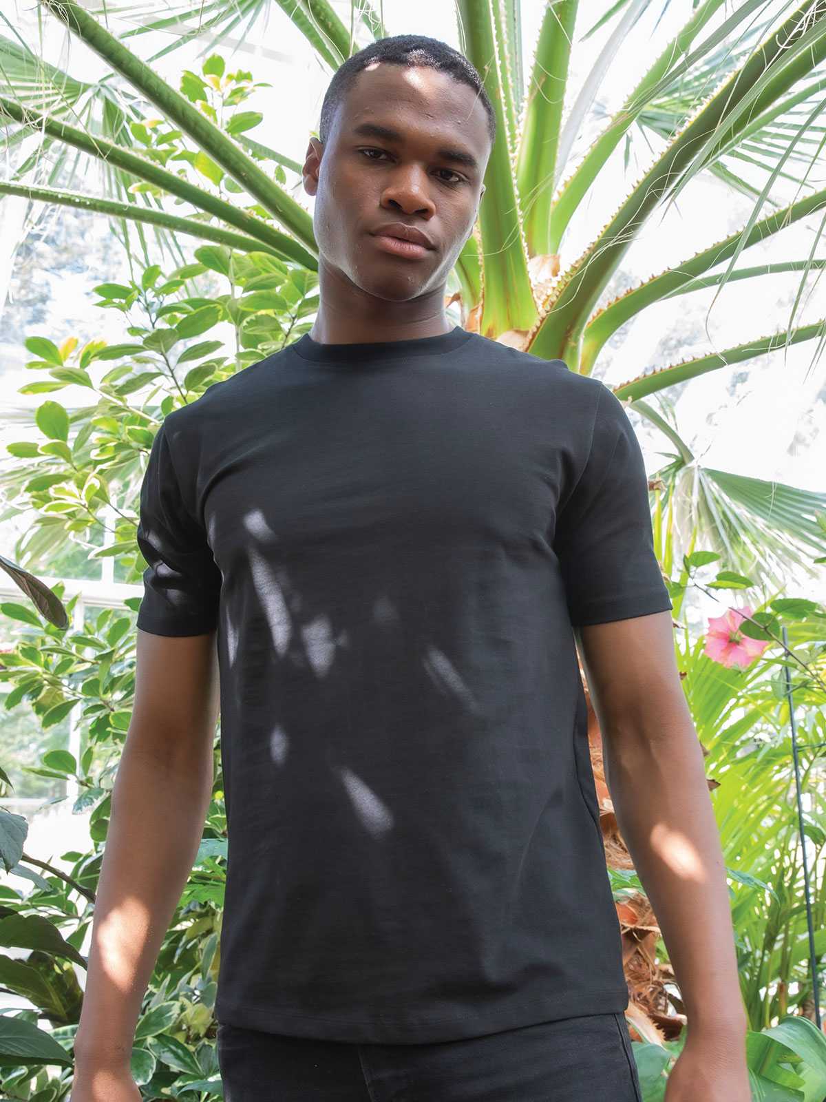 100% cotone organico. T-shirt unisex pesante, vestibilità ampia. Cuciture doppie su maniche e orlo, girocollo in costina 1x1. Etichetta removibile al collo. Etichetta con istruzioni di lavaggio in cotone organico.