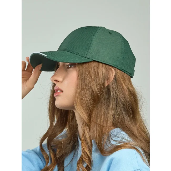 100% jacquard di poliestere riciclato. Classico berretto automobilistico rivisitato in jacquard di poliestere riciclato, 6 pannelli, bordino sulla visiera curva, forma strutturata con chiusura a strappo con foro in plastica, etichetta removibile.