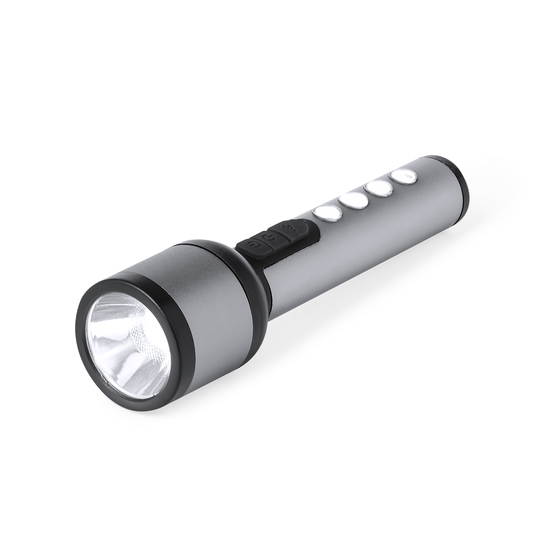 Potente torcia in alluminio dal design elegante con finitura grigio metallizzato e accenti neri. Dispone di 1 LED frontale per un'illuminazione mirata e di 4 luci COB nell'impugnatura per una maggiore dispersione della luce. Offre 3 modalità di illuminazione: fissa, lampeggiante lenta e lampeggiante veloce, per adattarsi alle varie esigenze. Questa torcia è ricaricabile tramite la batteria da 1200 mAh, con cavo di ricarica incluso. Confezionata singolarmente in una scatola di design kraft.