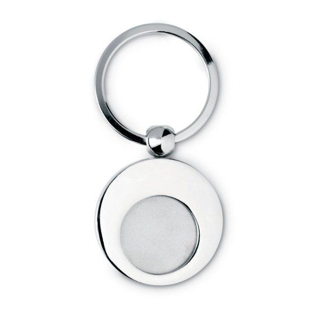 Portachiavi rotondo in metallo con gettone per il carrello della spesa.