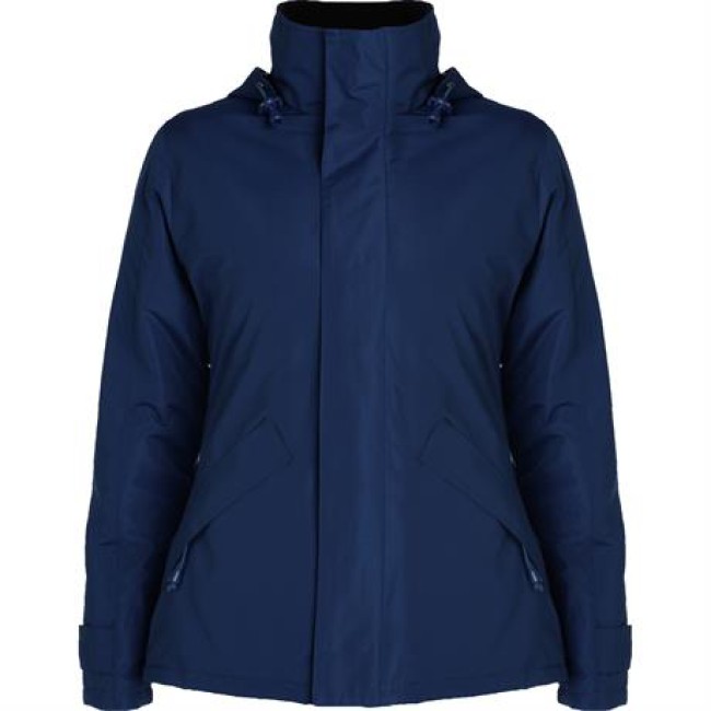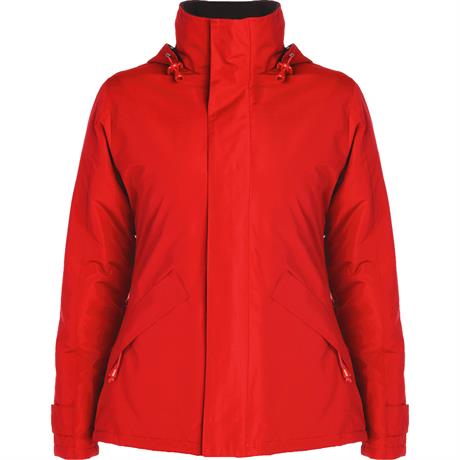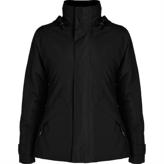 Parka aderente, impermeabile e imbottito. · Cerniera centrale iniettata con patta. · Collo alto con cappuccio ripiegato rimovibile. · Tasche laterali con cerniera e patta. · Polsini regolabili in velcro. · Due tasche interne sul petto con chiusura a velcro.· Accesso interno per la serigrafia o il ricamo.