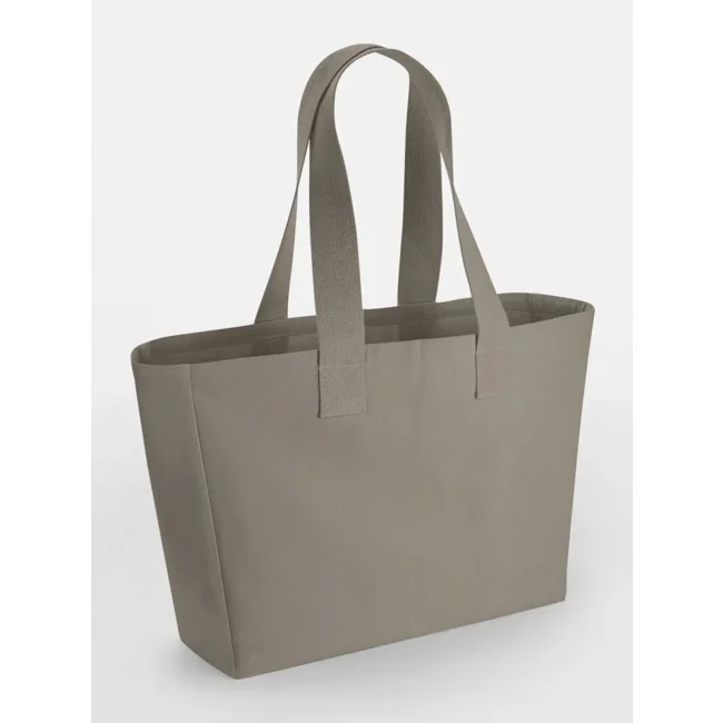 100% cotone canvas. Borsa portabile a mano o a spalla, in stile oversize, con manici in morbida fettuccia ed etichetta removibile. Lunghezza manici: 83 cm, dimensioni: 43x 34,5x 13,5 cm, capacità: 24 lt.