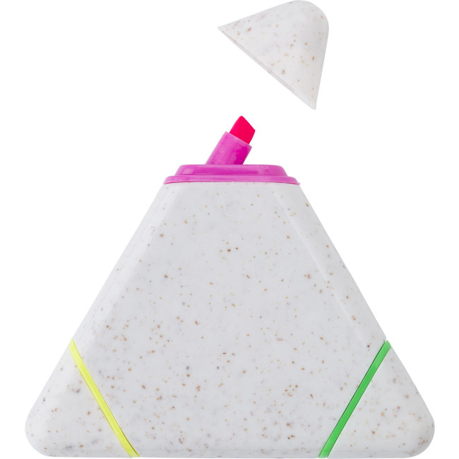 Evidenziatore in PP e paglia di grano a tre colori: rosa, verde e giallo