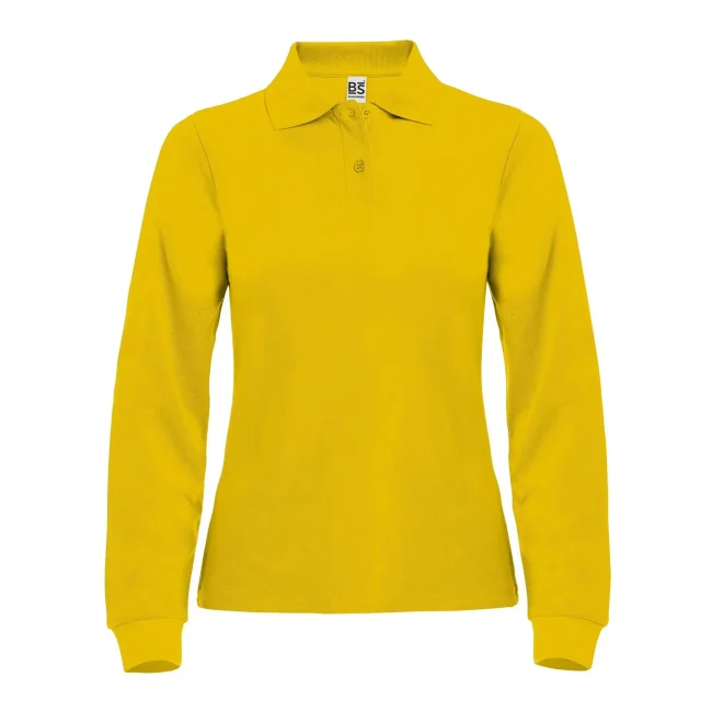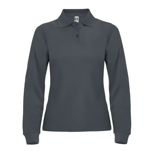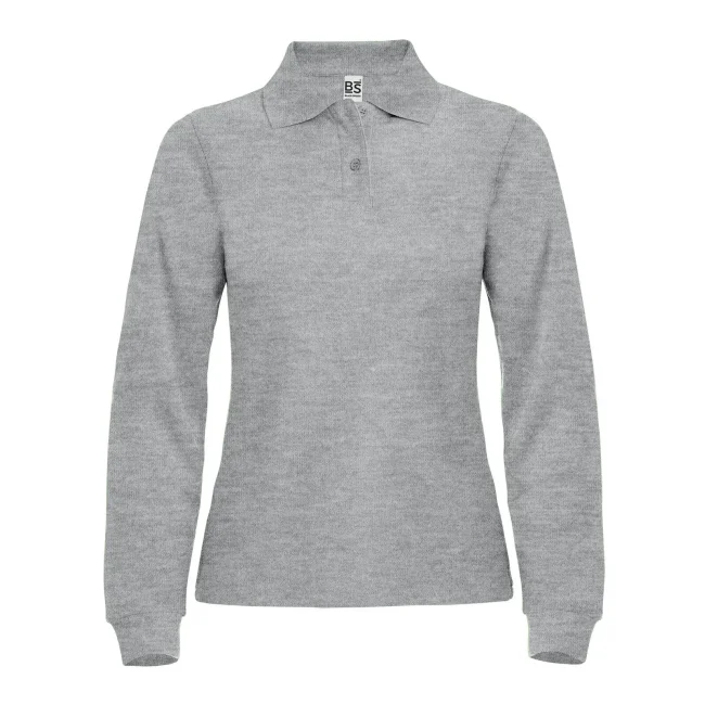 100% cotone piqué. Polo donna a maniche lunghe set-in con costine, 2 bottoni tono su tono, nastro di rinforzo al collo, struttura con cuciture e spacchetti laterali. Etichetta strappabile. Composizione: Grey Heather: 85% cot. 15% visc.