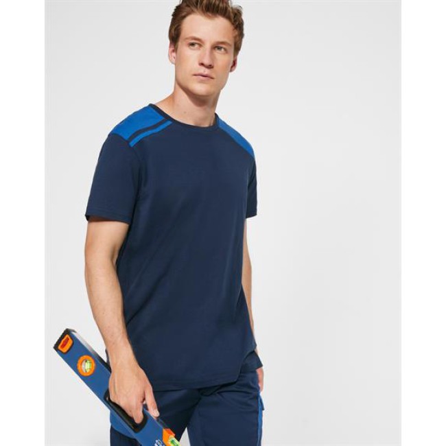 T-shirt manica corta in colori combinati. · Girocollo con cuciture interne a contrasto. · Spalle e dettagli a contrasto.