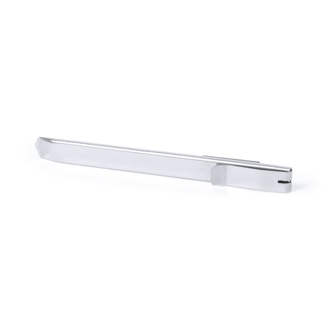 Taglierino in acciaio inox con lama fine e clip. Cappuccio rimovibile per la regolazione del taglio della lama.