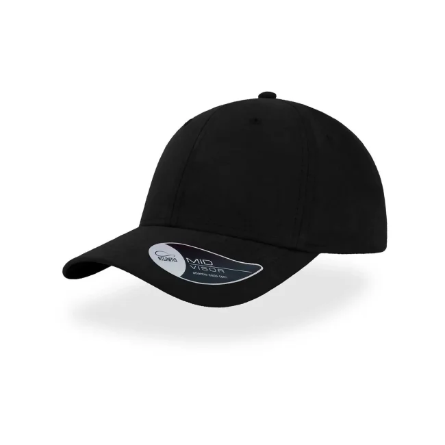 100% poliestere . Cappellino a 6 pannelli con occhielli ricamati, sottovisiera a contrasto, pannello frontale rinforzato, visiera pre-curvata, adesivo sulla visiera, parasudore in cotone, chiusura con fibbia e foro cucito, etichetta removibile, taglia unica.