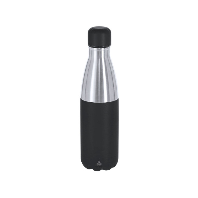 Bottiglia termica da 550 ml di capacità, realizzata in acciaio inox riciclato a doppia parete. Il suo design combina un corpo con finitura silver con tappo a vite e base di colore opaco abbinato. Priva di BPA. Include distintivo di acciaio inox riciclato.L'acciaio è uno dei materiali più richiesti e che può essere trovato quasi ovunque, da prodotti di uso quotidiano a grandi costruzioni. Con innumerevoli proprietà, tra cui la durabilità e l'elevato grado di riutilizzo, lo rende un'alternativa molto apprezzata nelle soluzioni di sostenibilità. Adeguatamente trattato, consente di ottenere nuove risorse di utilizzo infinito.