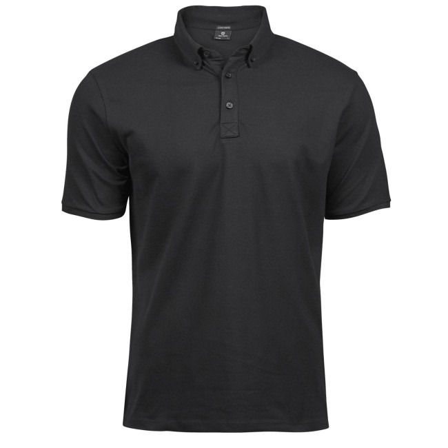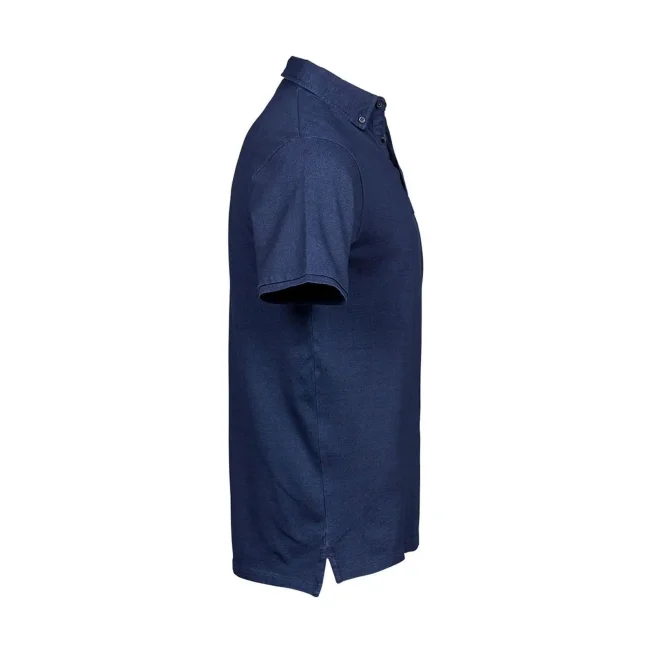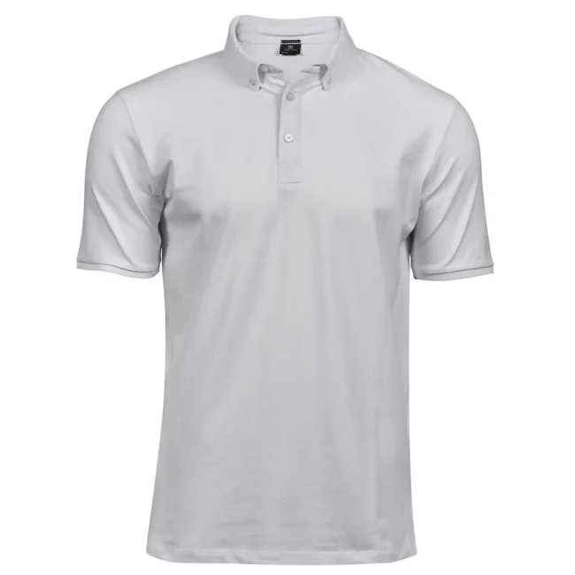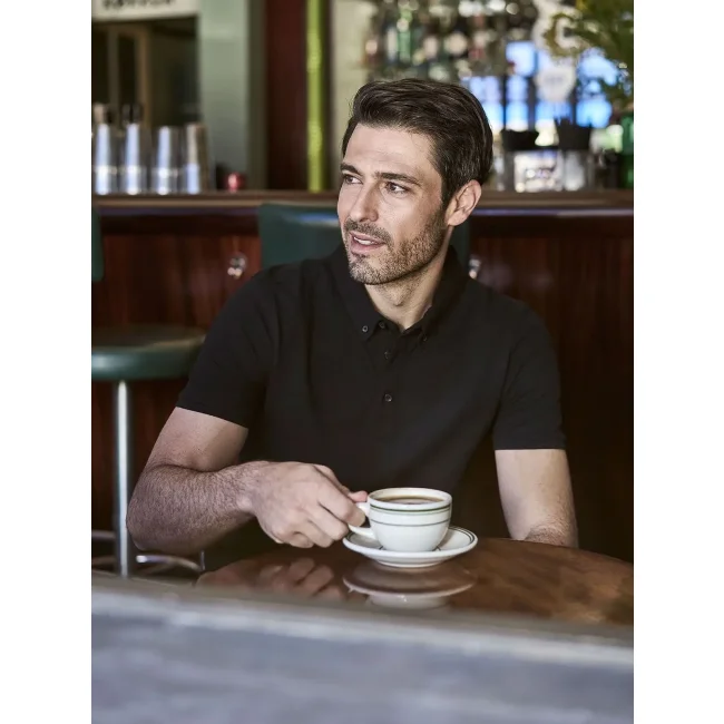 95% cotone ring-spun, 5% elastane. Polo a maniche corte set-in, mini piqué, struttura con cuciture e spacchetti laterali, parte posteriore leggermente più lunga, 3 bottoni tono su tono.