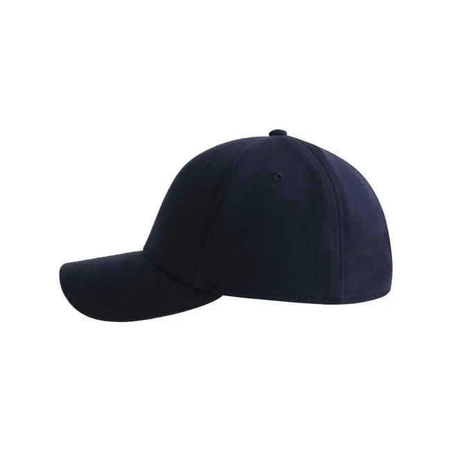 78% cotone 22% poliestere. Cappellino a 6 pannelli con occhielli ricamati, pannello frontale rinforzato, visiera pre-curvata, adesivo sulla visiera, parasudore in poliestere, chiusura in pvc, etichetta strappabile, taglia unica.