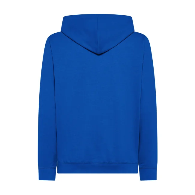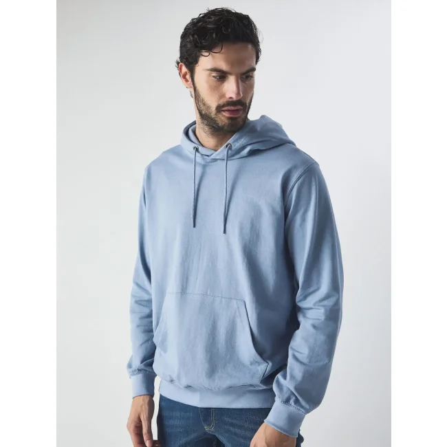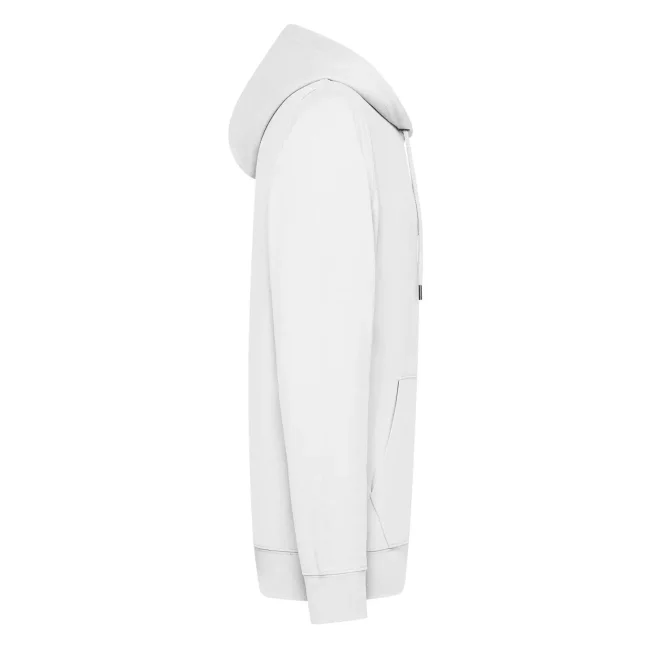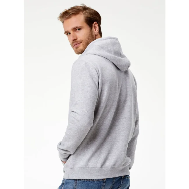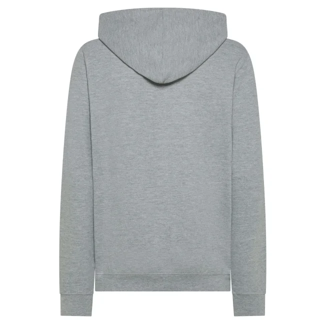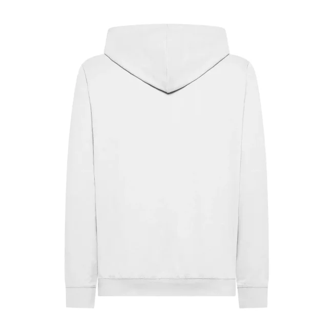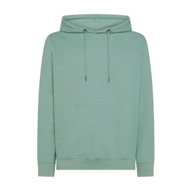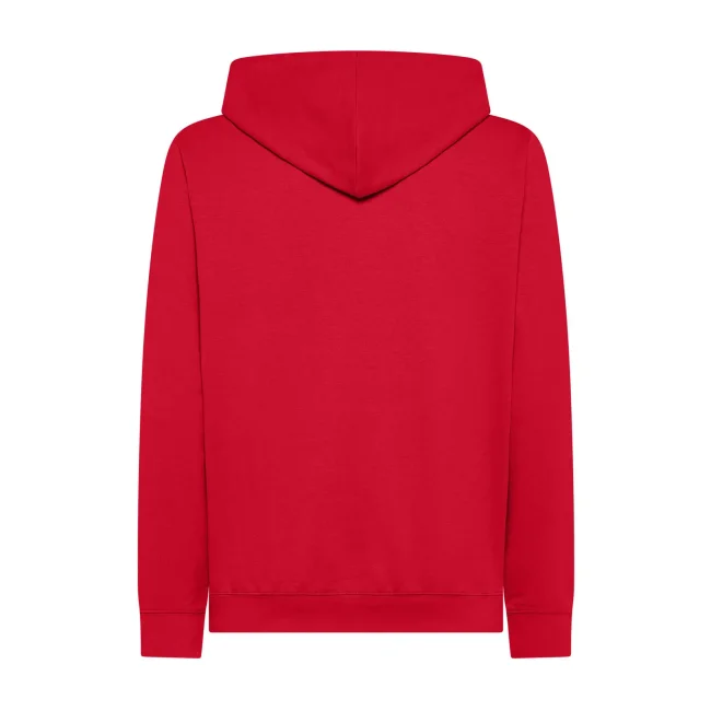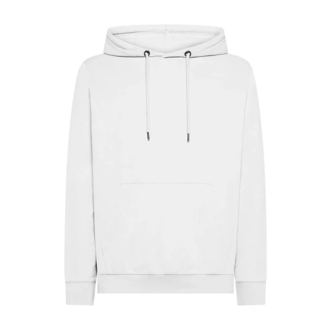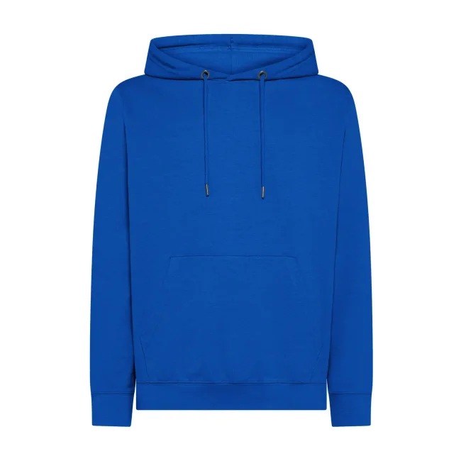 Felpa con cappuccio in french terry composta da 80% cotone e 20% poliestere. Presenta cappuccio doppio strato, occhielli in metallo e cordini con punta in plastica. La tasca a marsupio e le cuciture laterali garantiscono comfort e praticità. L'etichetta strappabile rende il prodotto ancora più comodo.