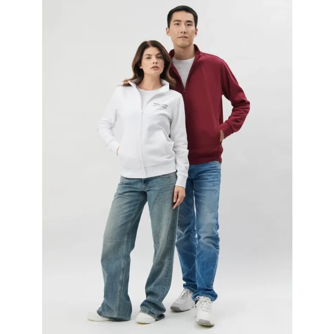 Felpa Full Zip realizzata in una miscela di 70% cotone e 30% poliestere, felpata internamente per garantire calore. Presenta una zip intera, tasche a filetto e orlo inferiore con polsini in costina. La struttura con cuciture laterali assicura una vestibilità confortevole e pratica.