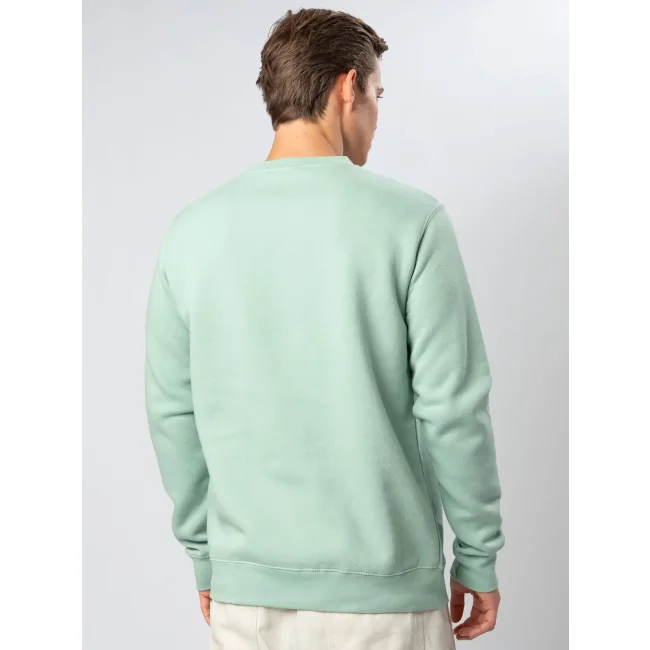 70% cotone, 30% poliestere. Felpa girocollo, felpata internamente. Collo, polsini e orlo inferiore in costina, rinforzo sul colletto, maniche set-in, struttura con cuciture laterali. Etichetta strappabile. Interno in poliestere ed esterno 100% cotone.