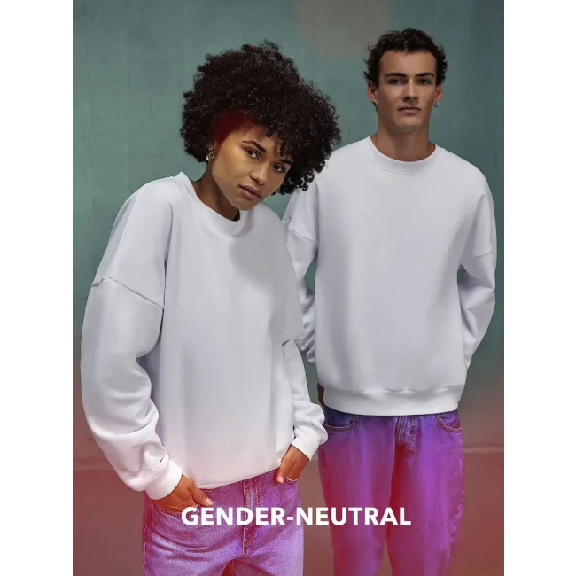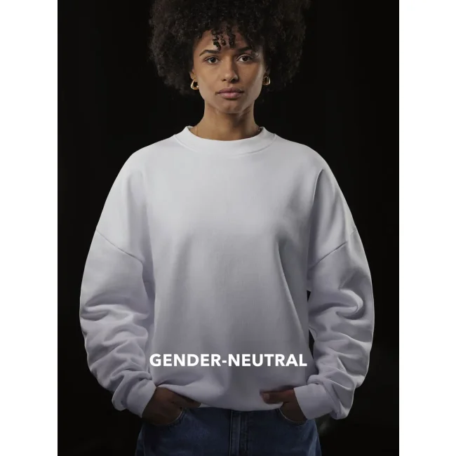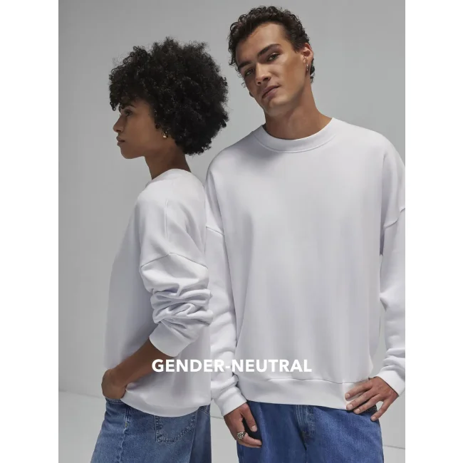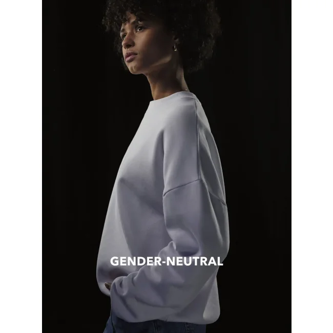 Felpa girocollo oversize in cotone e poliestere riciclato, con spalle scese e taglio gender-neutral. Il tessuto felpato internamente offre una sensazione lussuosa al tatto. Priva di etichetta, è perfetta per la personalizzazione.