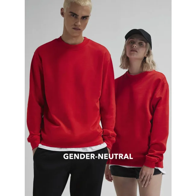 Felpa girocollo gender-neutral in cotone e poliestere riciclato, con cuciture laterali e polsini classici. L'interno felpato e l'esterno in 100% cotone garantiscono una migliore resa di stampa. Priva di etichetta, è ideale per la personalizzazione.