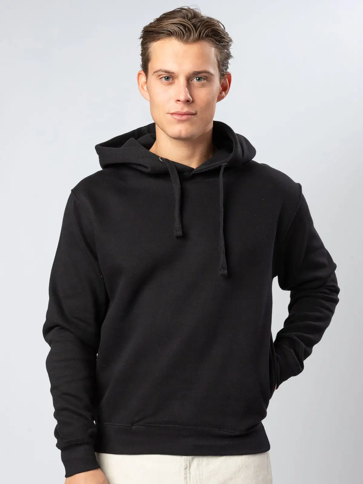 70% cotone, 30% poliestere. Felpa con cappuccio doppio e tasche a filetto inserite nelle cuciture laterali per una maggiore superficie di stampa. Piccola etichetta taglia al collo, etichetta composizione sul fianco. Felpata internamente. Interno in poliestere ed esterno 100% cotone.