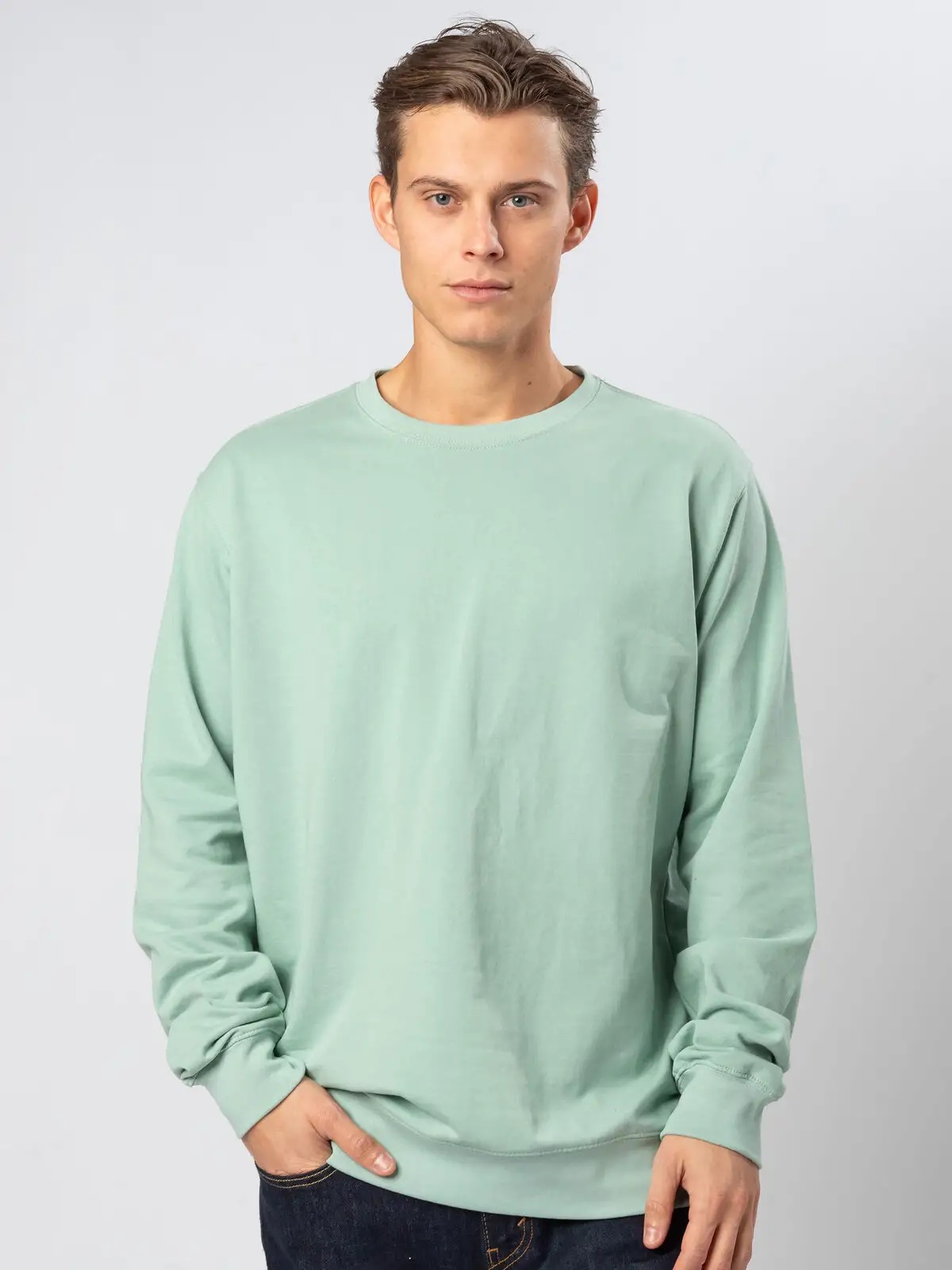 Felpa girocollo in french terry con rinforzo sul colletto e maniche set-