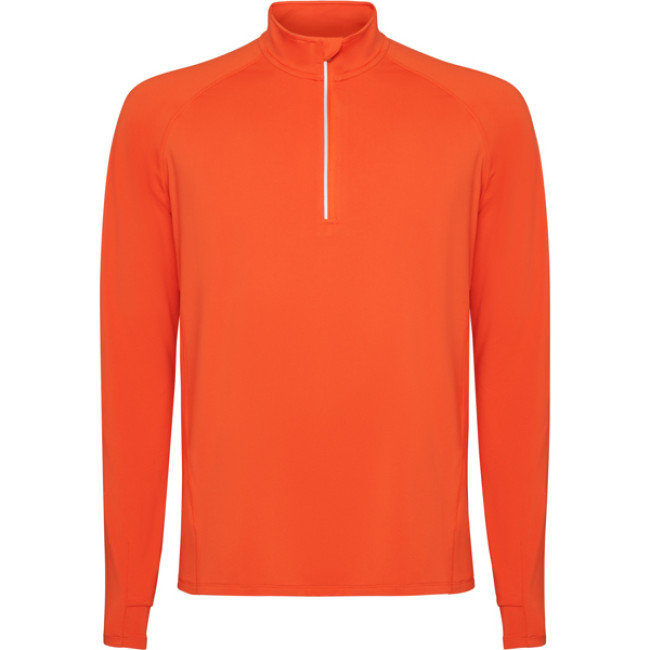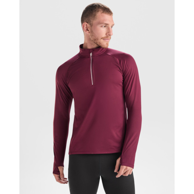 Felpa tecnica a maniche lunghe raglan, dotata di colletto a mezza zip dal design inverso e dettagli catarinfrangenti. I polsini con aperture per il pollice e il caldo tessuto interno spazzolato offrono comfort e praticità. Personalizzabile per branding aziendale.