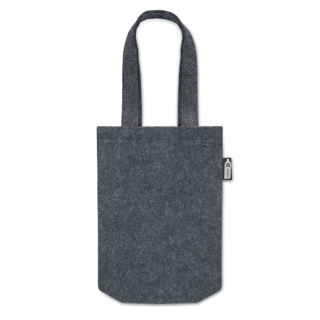 Piccola borsa regalo in feltro RPET con manici corti e soffietti sul fondo. Con uno spessore di 1 mm, è progettata per resistere all'uso quotidiano. Questo sacchetto è ideale per presentare regali in modo elegante e sostenibile, contribuendo alla riduzione della plastica.