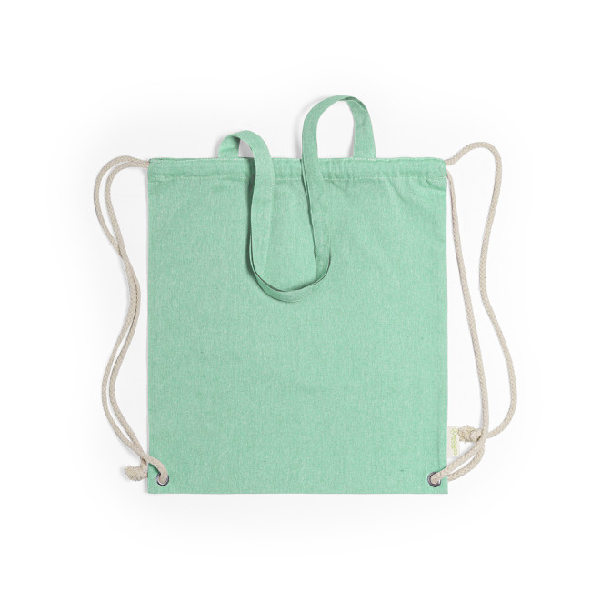 Shopper sacca con corde della linea natura, in robusto cotone riciclato da 140 g/m2 , con maniglie di trasporto da 70 cm abbinate. Stringhe in cotone ecrù, con anelli metallici rinforzati ed etichetta distintiva del cotone riciclato. Disponibile in un'ampia gamma di colori. Resistenza fino a 9 kg di peso.