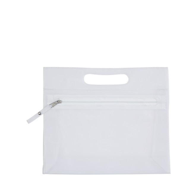 Beauty Case multiuso in resistente PVC semitrasparente in una serie di colori vivaci. Con robusta maniglia sagomata e chiusura a zip in tinta, con cinturino sulla maniglia per facilitare l'apertura.