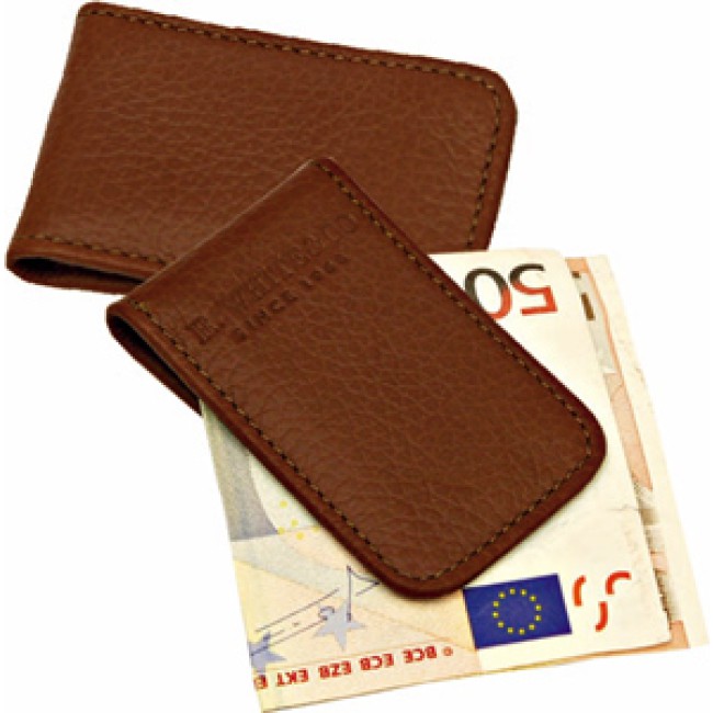 Fermasoldi "WRC" con calamita in pelle cognac, rifiniture in tinta. Confezione in scatola.