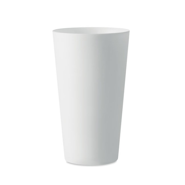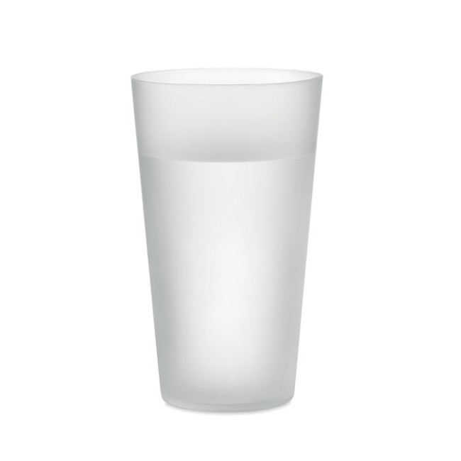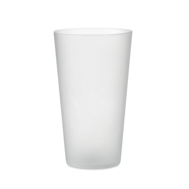 Tazza riutilizzabile per eventi in PP con finitura smerigliata. Capacità: 500 ml. L'utilizzo di bicchieri riutilizzabili è una scelta sostenibile per evitare inutili sprechi. Con la diminuzione della diffusione della plastica usa e getta, questi bicchieri riutilizzabili sono la soluzione perfetta per ogni evento, festa e festival.