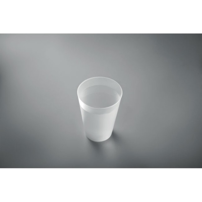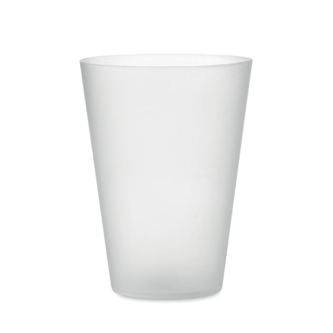 Tazza riutilizzabile per eventi in PP con finitura smerigliata. Capacità: 300 ml. L'utilizzo di bicchieri riutilizzabili è una scelta sostenibile per evitare inutili sprechi. Con la diminuzione della diffusione della plastica usa e getta, questi bicchieri riutilizzabili sono la soluzione perfetta per ogni evento, festa e festival.