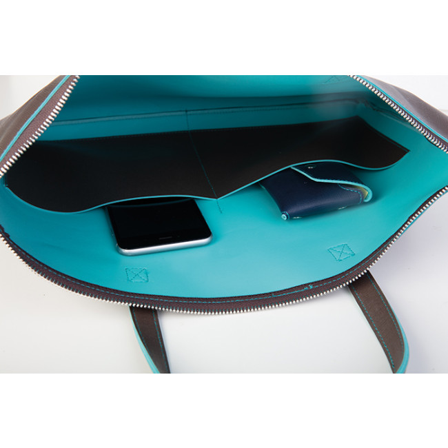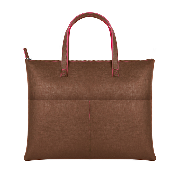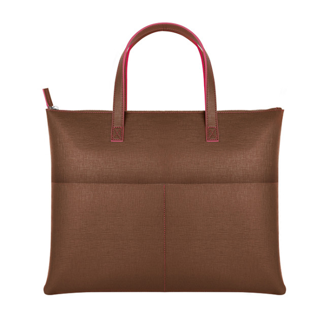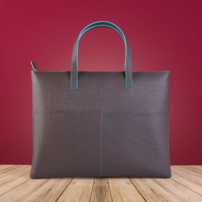 borsa shopping/portadocumenti bicolore chiusura con zip manici cuciti 2 tasche interne 2 tasche esterne rifiniture cucite shopper Cavallari su richiesta: CA820 tecnica di stampa consigliata: serigrafica - incisione - a caldo