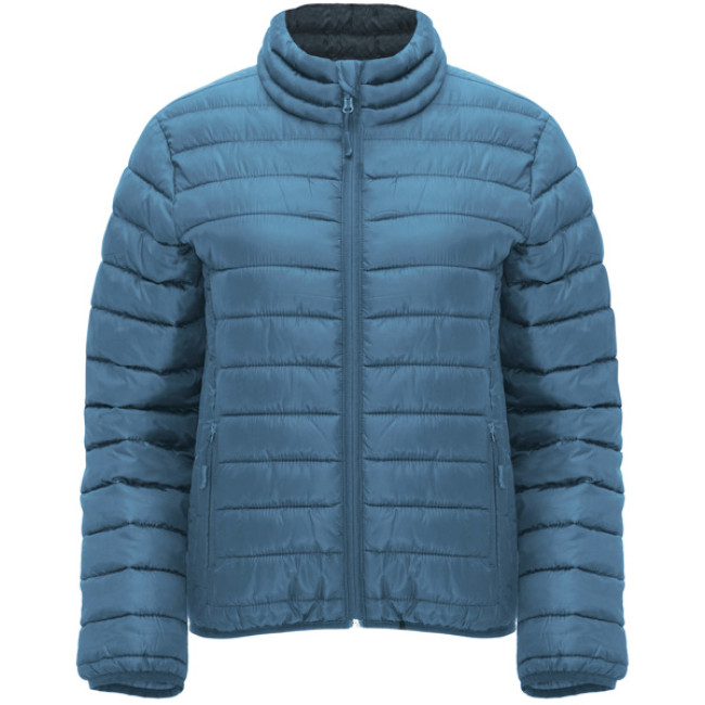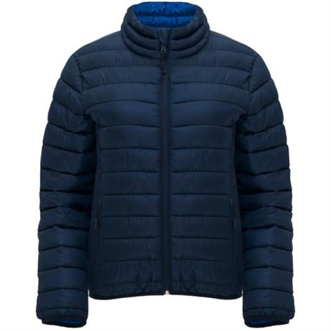 Giacca trapuntata aderente con imbottitura tatto piuma. Cerniere invertite in tinta con protezione per il mento e tirante. Due tasche laterali con cerniera.Finiture elastiche in tinta su polsini e girovita.. Rivestimento interno a contrasto.Indumento leggero e pieghevole.