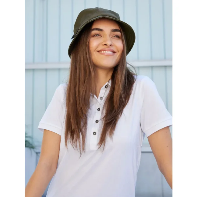100% poliestere (riciclato). Cappello alla pescatora, 5 cuciture decorative sulla falda, fascia antisudore foderata, regolazione della misura grazie alla corda elastica, taglia unica: 55-60 cm