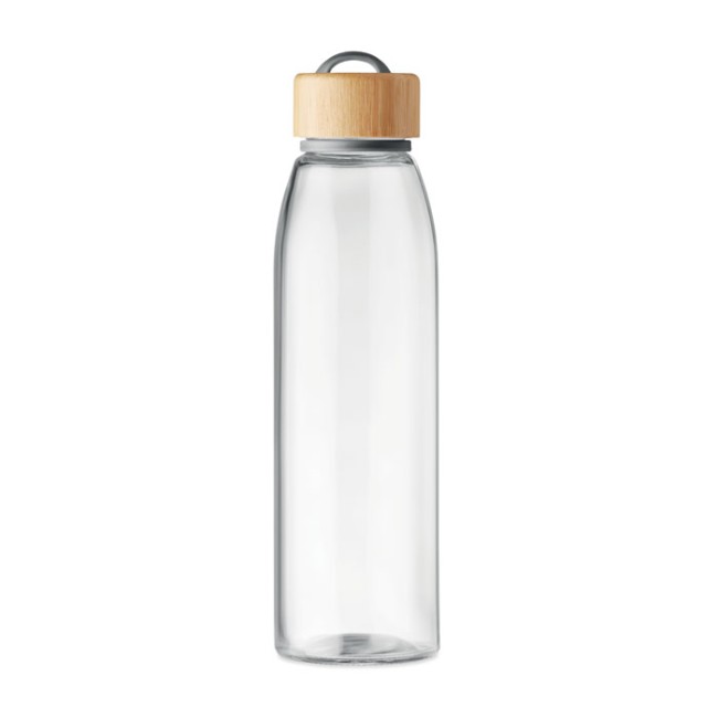 Bottiglia in vetro con coperchio in bamboo e supporto in TPU. Portate sempre con voi la vostra bevanda preferita ovunque andiate, sarete sempre idratati. Il supporto in TPU facilita il trasporto della bottiglia o il fissaggio a una borsa. Il coperchio in bamboo conferisce a questa bottiglia un aspetto naturale. Non adatto per bevande gassate. Capacità: 500 ml. Senza perdite. Il bamboo è un prodotto naturale, potrebbero esserci leggere variazioni di colore e dimensione per articolo, che possono influenzare il risultato finale della personalizzazione.