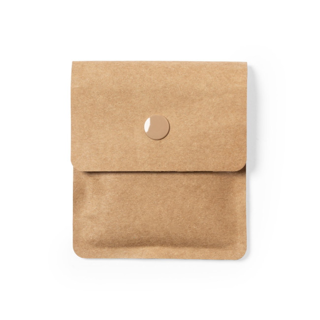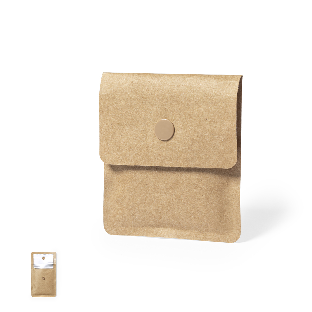 Posacenere tascabile della linea natura, con esterno in carta riciclata laminata e interno in alluminio ignifugo. Patta con chiusura a gancio in tinta.