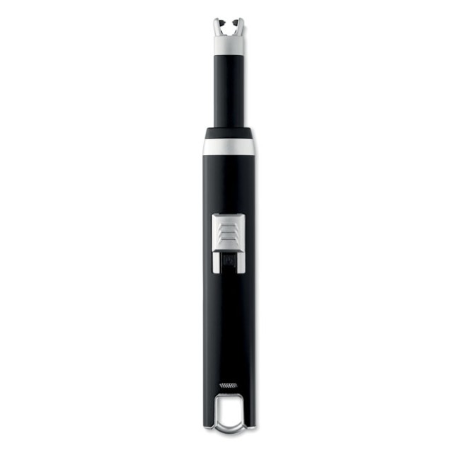 Accendino ricaricabile USB con fiamma ad arco singolo. Batteria agli ioni di litio da 220 mAh. Compreso cavo di ricarica USB.