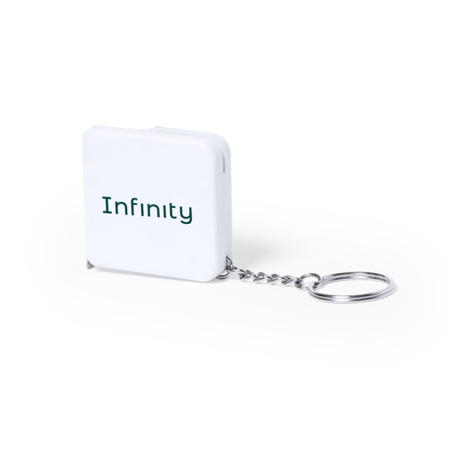 Flessometro da 1 m realizzato in robusto ABS bianco, dotato di apertura metallica integrata nel corpo. Presenta un'ampia superficie di stampa e le misure sono indicate sia in centimetri che in pollici, rendendolo versatile per ogni esigenza di misurazione.
